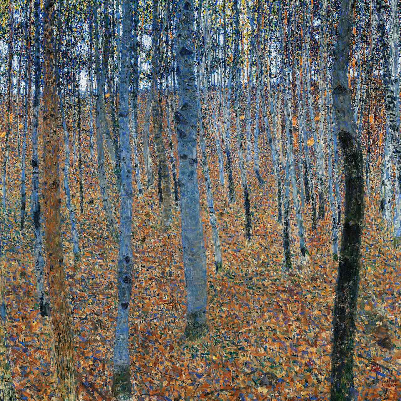 tags: landscape, trees, Birch trees, brown, grey, white, painting, repetition, square