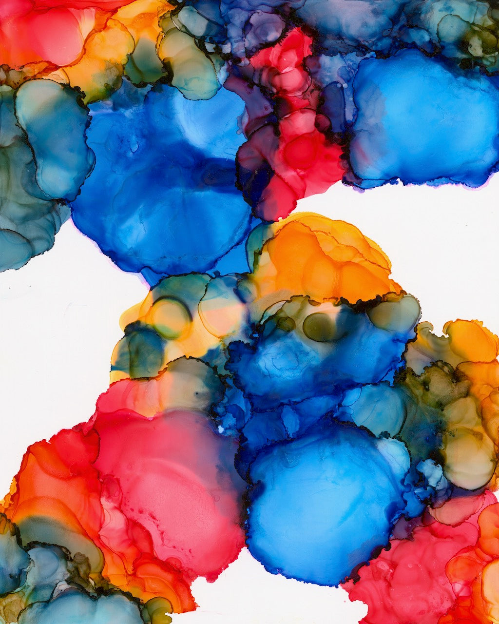 tags: abstract, inks, yellow, red, turquoise, pink, purple, vibrant