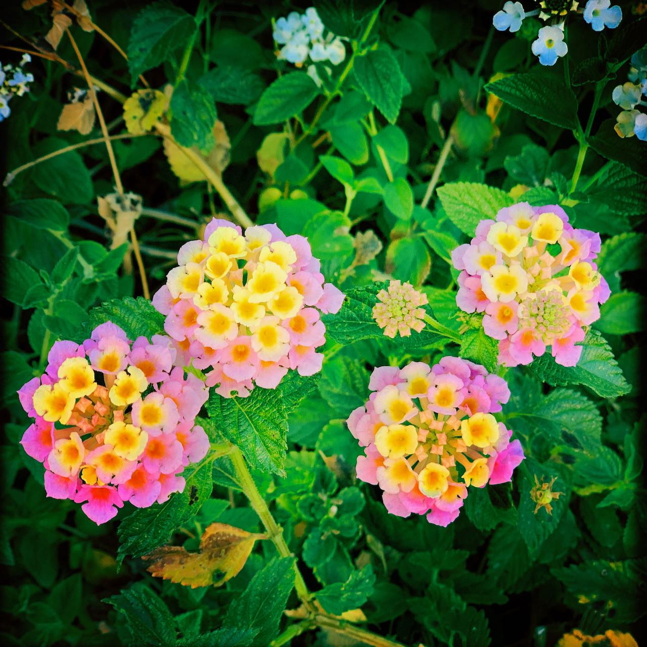 tags: photography, color photography, botanical, flower, plants, pink, yellow, floral, multi-color, vibrant, lively, square