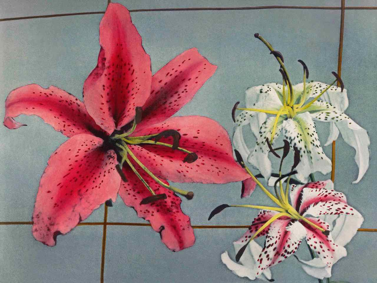 tags: botanical, flowers, leaves, drawings, vintage, white, red, blue, floral, painting, multi-color, horizontal