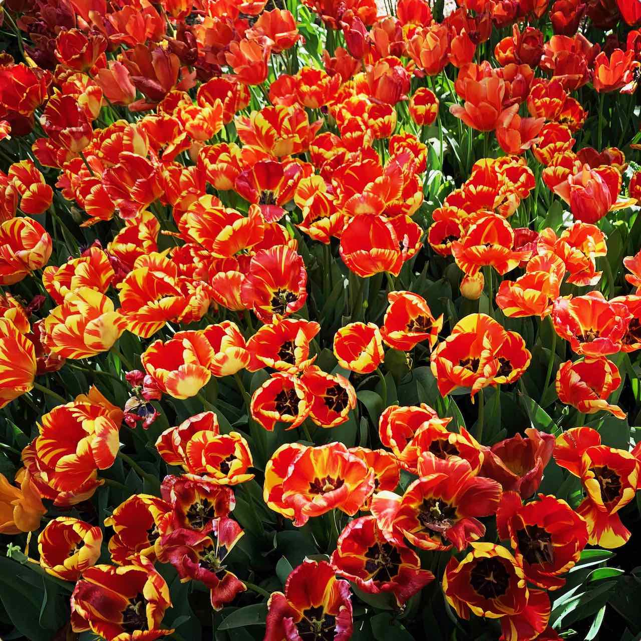 tags: photography, color photography, botanical, floral, leaves, green, orange, red, poppies, contrast, coloful, vivid, vibrant, square