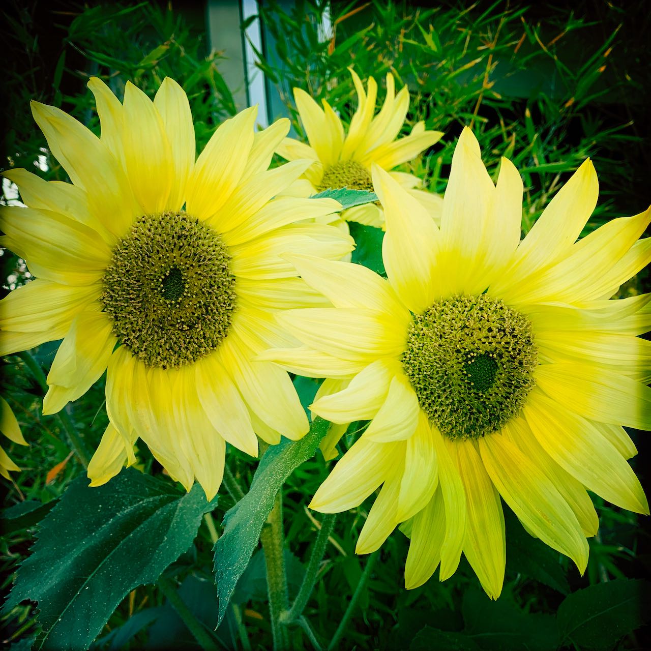 tags: photography, color photography, botanical, plant, flowers, sunflower, yellow, green, contrast, vibrant, square